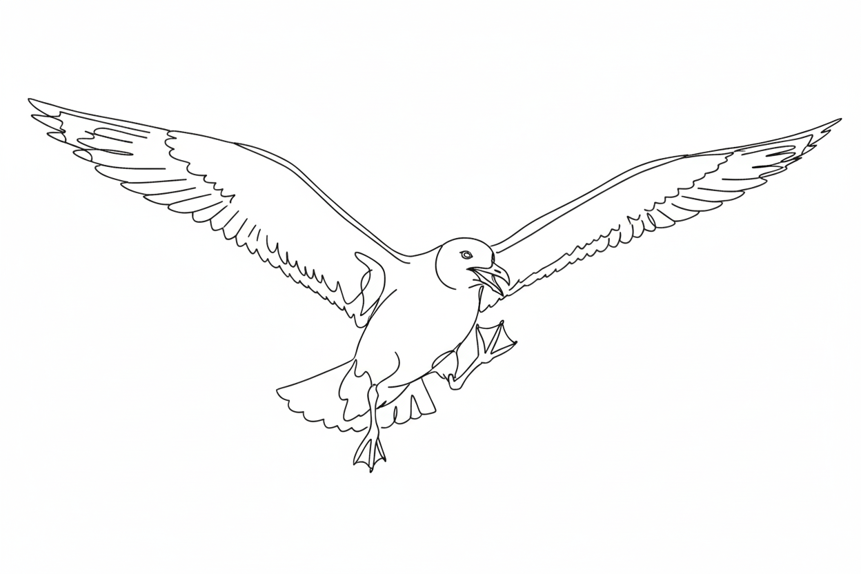 لفت نظري نورسٌ منها؛ كان يسرع في طيرانه ثم يبطئ فجأة، يوقف رفرفة جناحيه ويمدّهما، وينساب في هواء البحر من جديد. وفي تلك اللحظة تحديدًا، رأيته يحكّ ذقنه بإحدى قدميه، فعلٌ صغير، غير متوقع، لا يتناسب مع فعل الطيران الأسطوري.